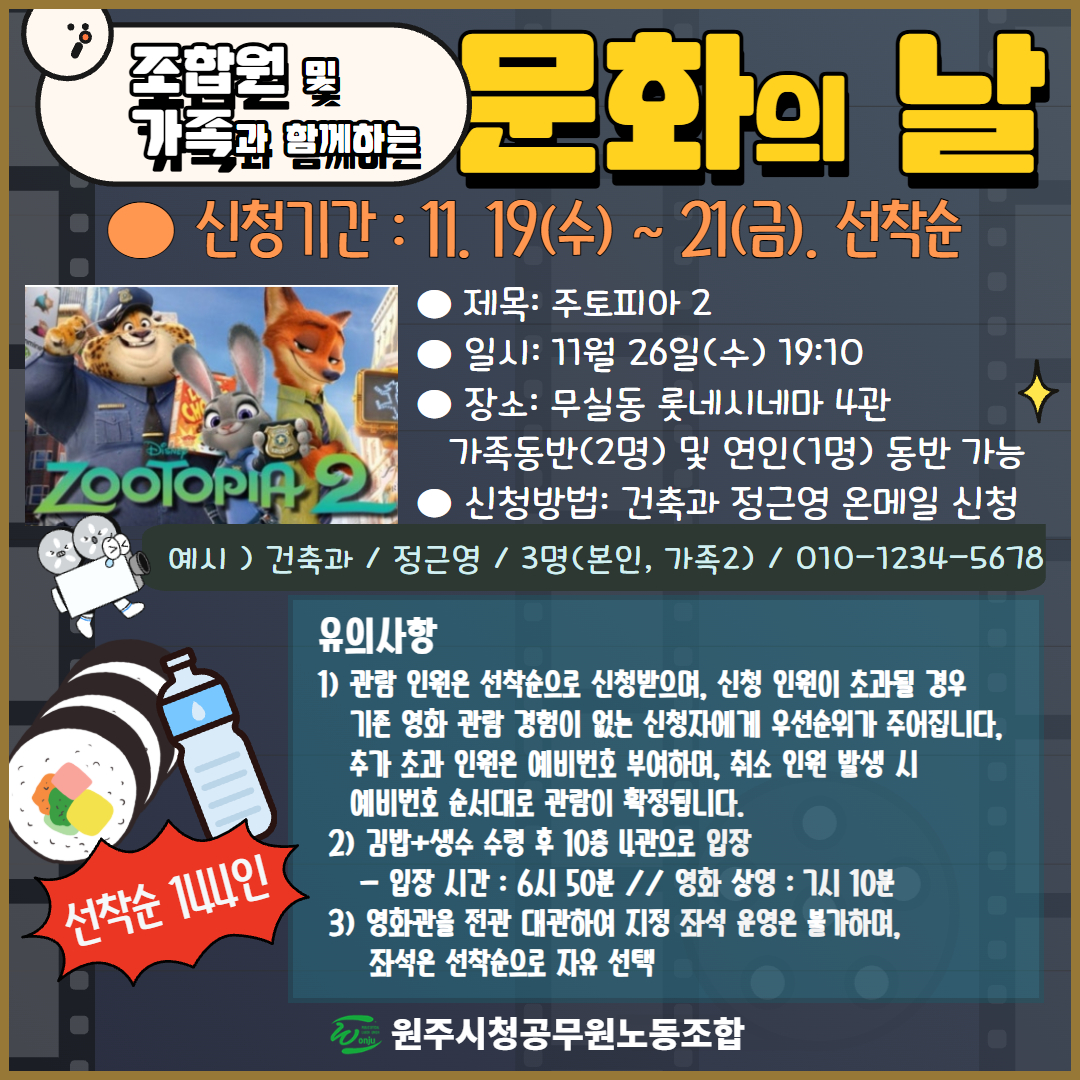 - 원주시청 공무원노동조합, 영화 “주토피아2” 단체 관람