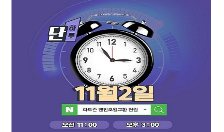 이벤트는 11월 2일 오전 11시, 오후 3시 두 차례에 걸쳐 퀴즈를 진행하고 정답을 맞추면 엔진오일 정비패키지를 천원에 구매할 수 있는 쿠폰을 발행해주고 참여방법은 포털사이트에 ‘파트존 엔진오일교환 천원’을 검색한 후 이벤트 페이지에 접속하면 참여가 가능하다. / 뉴스룸 column@sedaily.com