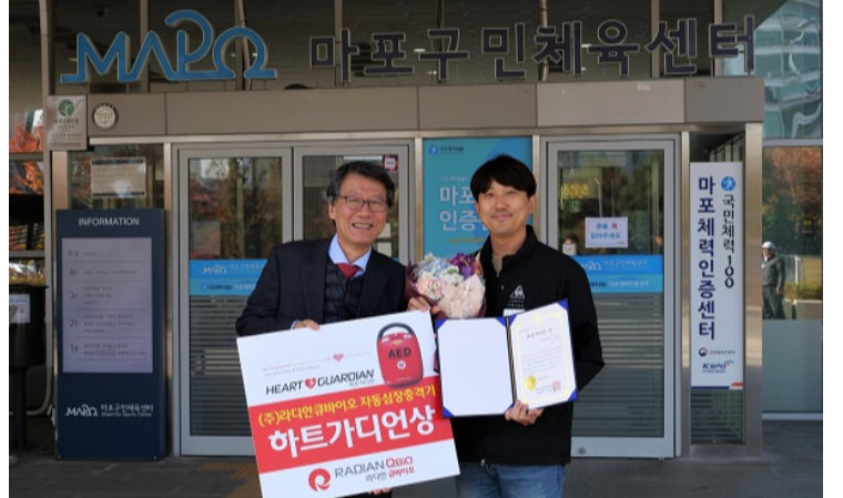 이와 관련해 바이오헬스케어 전문기업 라디안큐바이오는 지난 7일 16번째 의인인 마포구민체육센터 이재혁 대리에게 하트가디언상을 수여 했다고 밝혔다.