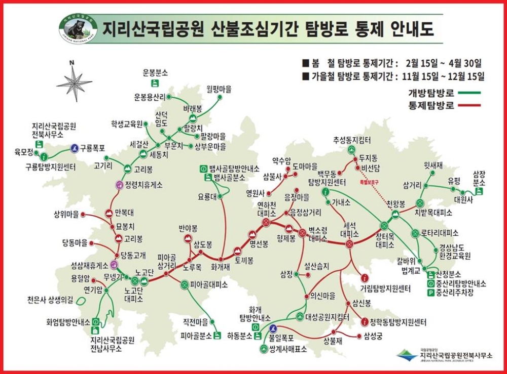 - 1지리산국립공원, 11월 15일부터 일부 탐방로 폐쇄