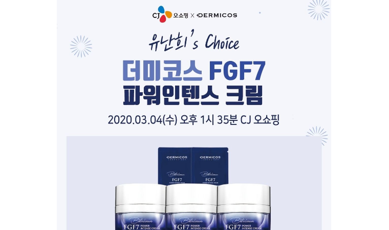 ㈜인스코비 바이오슈티컬 브랜드 더미코스(DERMICOS)의 'FGF7 파워 인텐스 크림'이 첫 런칭 후 연속 매진을 이어가고 있는 가운데 오는 3월 4일 낮 1시 35분 CJ오쇼핑에서 방송을 진행한다.