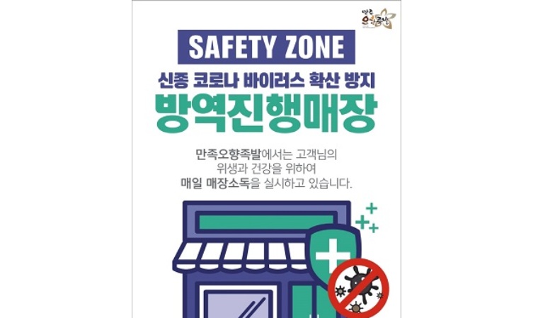 ㈜만족점의 족발브랜드 만족오향족발이 코로나19 예방을 위해 매일 전 지점 매장 방역 및 전 직원 마스크 착용, 손소독제를 비치하여 고객 응대 매뉴얼을 시행한다.