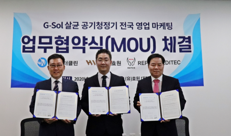 워터클린ㆍ효원ㆍ레폰메디텍, 대형살균공기청정기 전국 영업 마케팅 MOU 체결