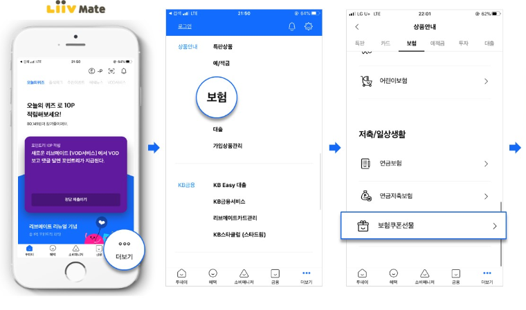 보험을 KB국민카드 '리브메이트(Liiv Mate)' 앱에서 e-쿠폰 형태로 간편하게 구입해 선물할