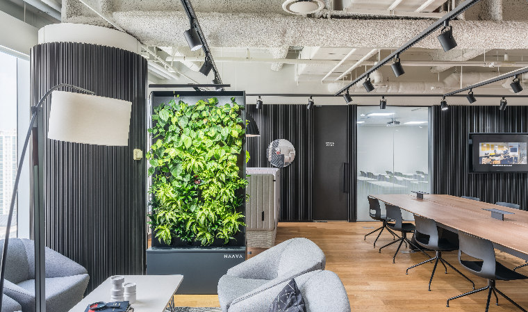 나아바코리아가 사무가구 전문기업 퍼시스와 함께 팬데믹 시대의 사무 환경 변화에 공동 대응하고자 퍼시스 부산센터 내 쇼룸 공간에 친환경 그린월 공간을 조성했다.