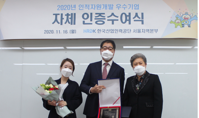 ㈜와이아이씨컴퍼니가 지난 11월 16일 ‘2020년 인적자원개발 우수기관(BEST-HRD)인증수여식’에서 우수기관으로 재인증을 받았다.