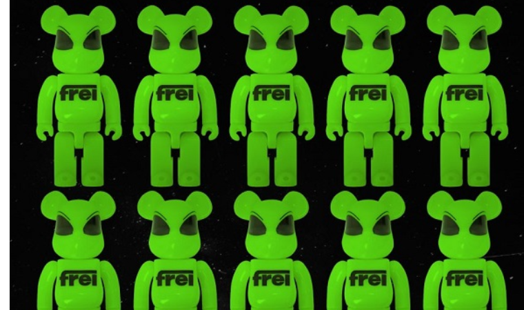 프라이와 베어브릭의 이번 협업 제품은 외계인에게서 영감을 받은 컨셉으로 야광 소재를 사용해 제작되었으며, 어두운 공간에서도 밝게 빛나는 우주공간 속 외계인의 모습을 그대로 담아냈다. 베어브릭 특유의 감성과 외계인의 이미지가 잘 어우러진 이번 협업 제품은 100%와 400% 세트로 300개 한정 수량으로 제작되었다.