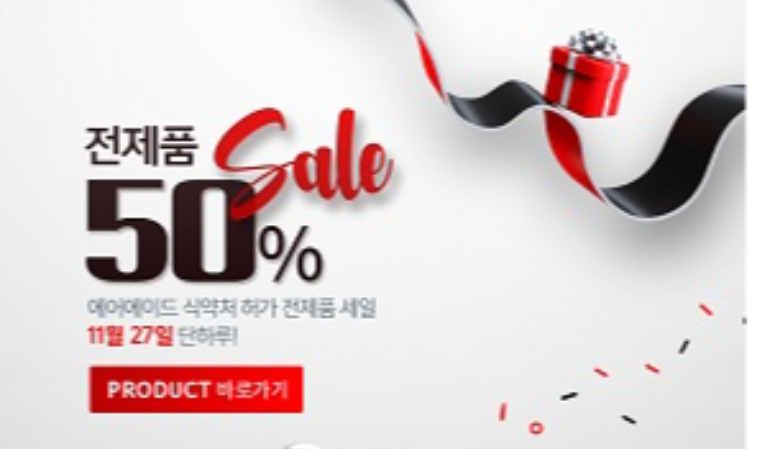 두 번째 이벤트는 에어에이드 반값 할인 이벤트다. 홈페이지 오픈 날인 27일 단 하루 동안, 식품의약품안전처 의약외품 허가된 에어에이드 전 제품을 50% 할인된 가격에 판매한다.