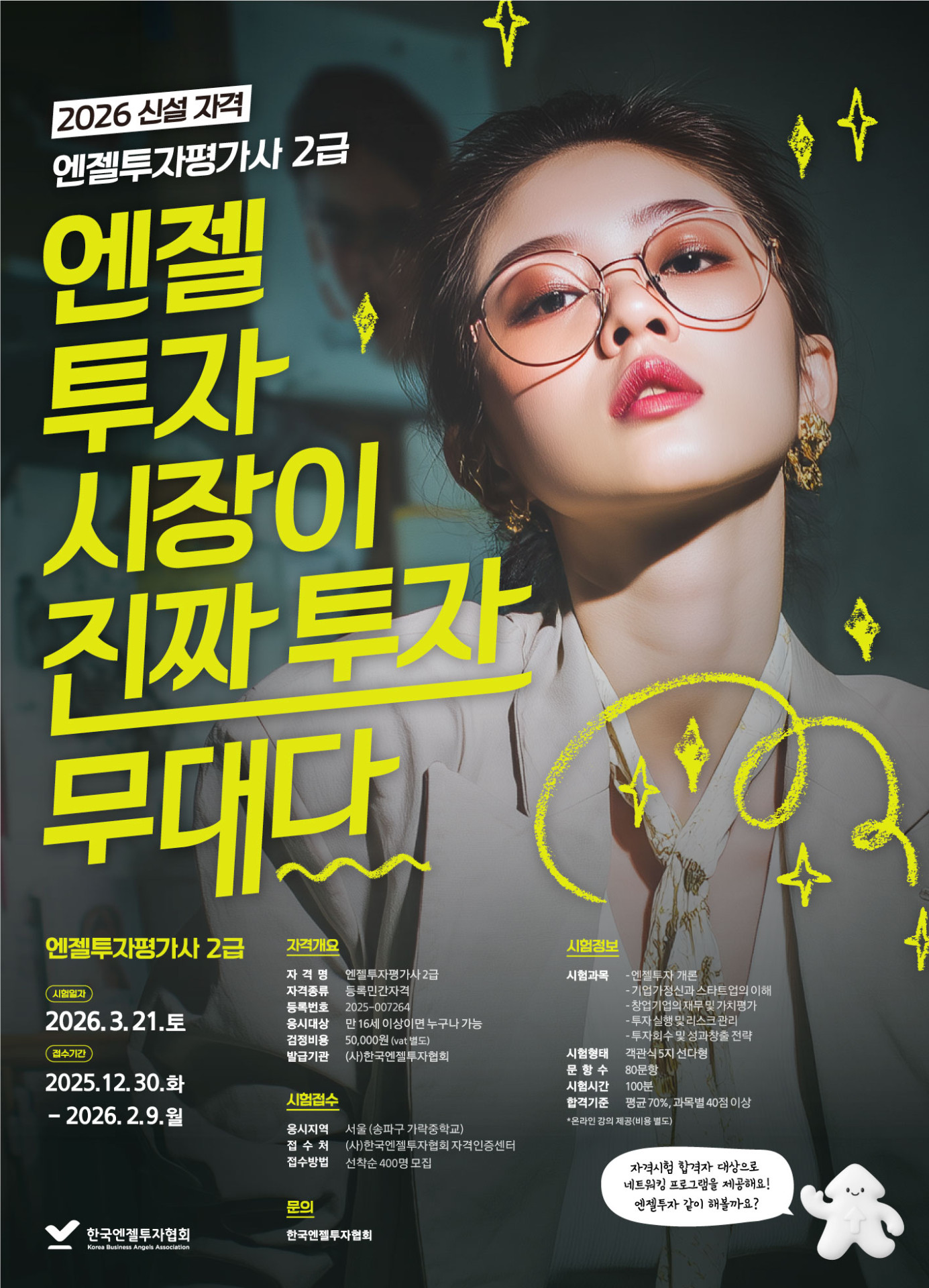 - 한국엔젤투자협회, 엔젤투자평가사 2급 시험 접수 시작