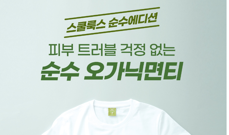 스쿨룩스 오가닉면티는 100% 유기농 면 섬유로 제작하여 트러블 걱정 없이 안전하고