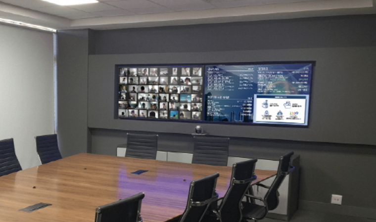 솔루션으로, △화상회의 △사내행사안내 △회의실예약현황 △재택근무현황표 △월중행사표 △각종 공지사항 △홍보동영상