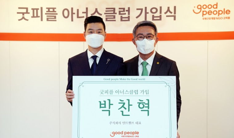 국제구호개발 NGO 굿피플(회장 김천수)이 인트웰브 박찬혁 대표가 굿피플의 고액기부자 모임인 ‘아너스클럽(Honors Club)’에 가입했다고 지난 9일 밝혔다.