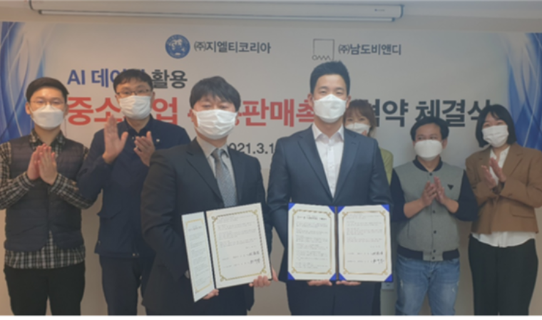 홈쇼핑 유통 전문기업 ㈜남도비앤디(대표 이준성)가 AI 빅데이터 분석 전문기업 ㈜지엘티코리아(대표 김재영)와 중소기업 유통판매촉진 관련 17일 양해각서를 체결했다고 밝혔다.