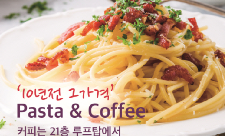전 오픈 시 선보인 ‘요일별 파스타&21층 루프탑 커피 세트’ 메뉴를 10년 전의 가격으로 판매하는 내용이다. 식전 빵과 함께 냉이 크림