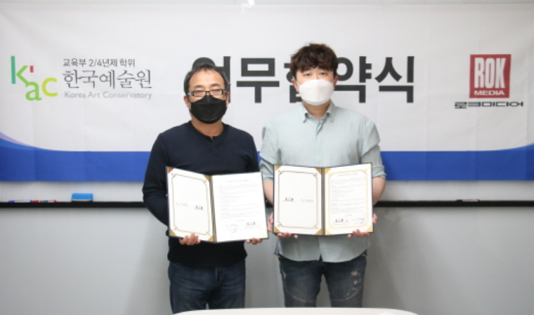 2년제 전문학사와 4년제 예술학사 교육기관 KAC한국예술원(학장 김형석)이 지난 4월 29일 한국예술원 본관에서 로크미디어와 업무 협약을 체결했다고 밝혔다.