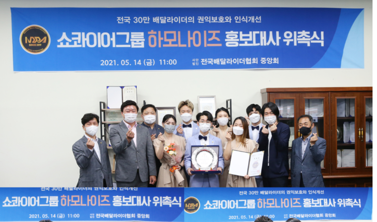 (사)전국배달라이더협회(협회장 송기선)가 쇼콰이어그룹 하모나이즈를 홍보대사로 위촉했다고 밝혔다.