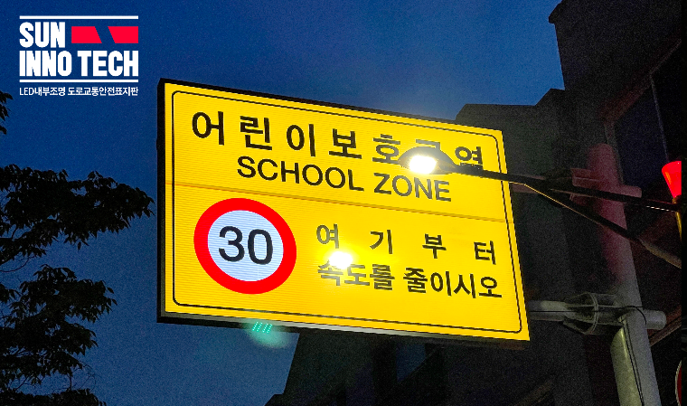 썬이노텍, 교통사고 예방 어린이보호구역 LED내부조명표지판 교체