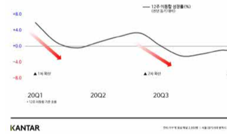 칸타 월드패널 분석 자료에 따르면 커피전문점 시장 성장의 흐름을 봤을 때 코로나 확산 및 거리두기 단계 격상에 따라 성장에 있어 요동치는 모습을