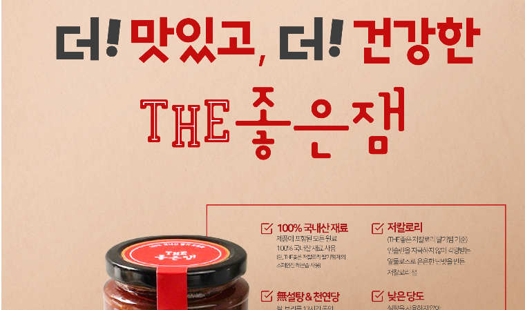 딸기, 무화과, 블루베리 세 가지 맛으로 출시된 THE좋은잼의 모든 재료는 100% 국내산 재료와 과일을 사용했으며 과일 본연의 맛을 살리고 영양소 파괴를 최소화하기 위해 시간이 오래 걸리는 저온 농축 방식을 채택해 만들었다.