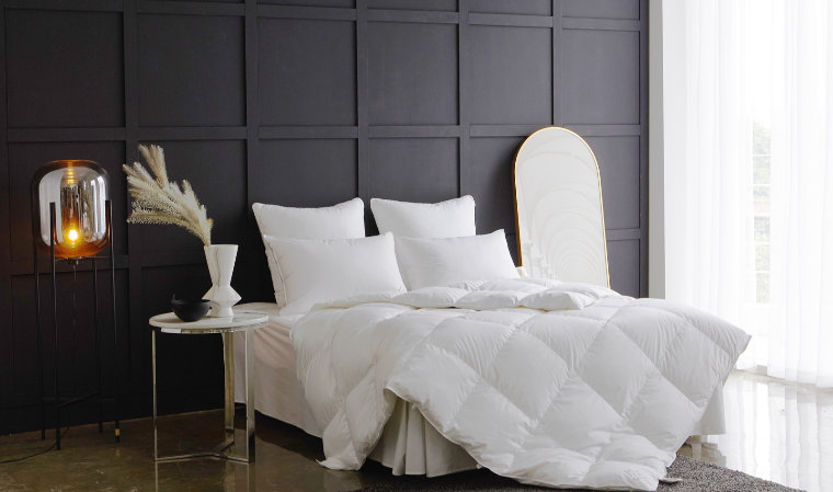 특히 내구성이 뛰어난 100수 평직 원단을 적용 무게가 가볍고 두께가 얇아 구스다운 이불의 장점을 극대화하고 다운프루프 공법으로 털 빠짐을 최소화한 것이 특징이다.