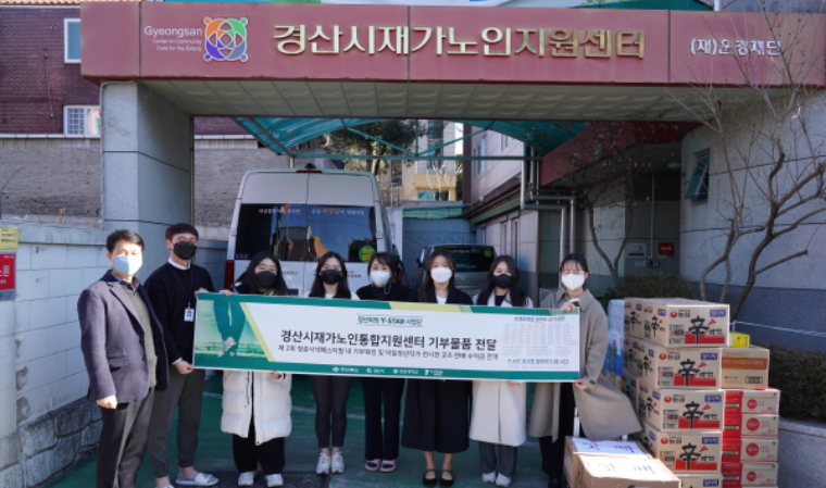 청년희망 Y-STAR 사업단이 지난 12일 코로나19로 인해 생계를 위협받고 있는 어르신들을 위해 사업단을 통해 육성된 덕질청년작가 4인과 함께 경산시재가노인통합지원센터에 생필품을 전달했다고 밝혔다.
