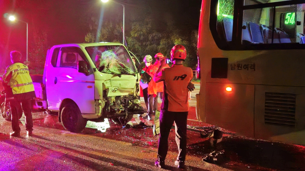 - 1남원 교차로서 트럭이 버스 들이받아…운전자·승객 2명 부상