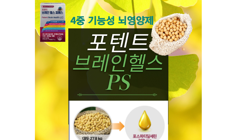 ‘포텐트 브레인 헬스 피에스’는 노화로 인해 저하된 인지력 개선 및 자외선에 의한 피부 손상으로부터 피부 건강 유지∙피부 보습에 도움을 주는 포스파티딜세린 성분과 기억력과 혈행 개선에 도움을 주는 은행잎추출물, 정상적인 면역기능 및 세포 분열에 필요한 아연, 유해산소로부터 세포를 보호하는 항산화 성분의 셀레늄이 함유되어 있다.
