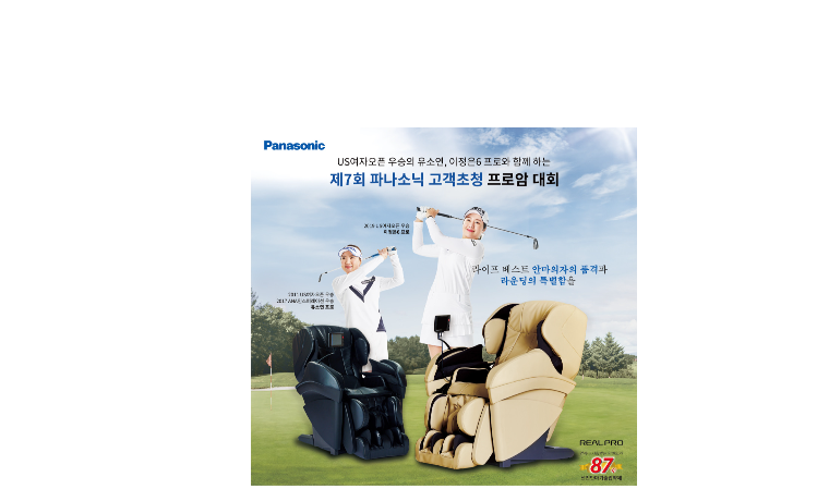 파나소닉코리아는 지난 8월부터 실시한 안마의자 MAK1 구매고객 초청 이벤트를 오는 9월 30일까지 실시하고 있다. 3년 만에 개최하는 ‘제7회 파나소닉 고객초청 프로암 대회’는 해당 기간 내 파나소닉 안마의자 EP-MAK1을 구매한 고객 가운데 100명을 추첨해 진행된다.