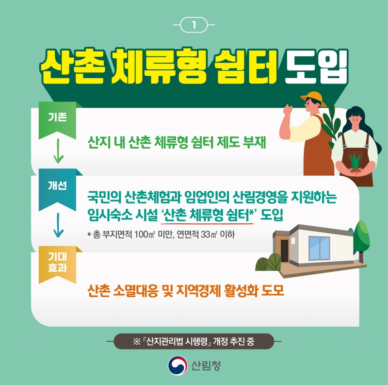 - 2서부지방산림청, '산촌 체류형 쉼터' 도입 추진