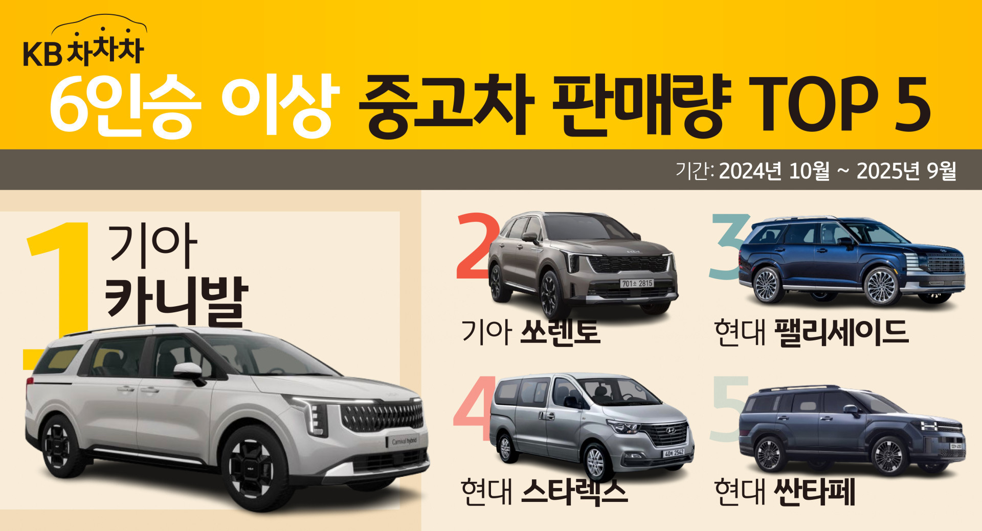 - KB캐피탈 "KB차차차 6인승 이상 중고차 판매 1위는 기아 카니발"