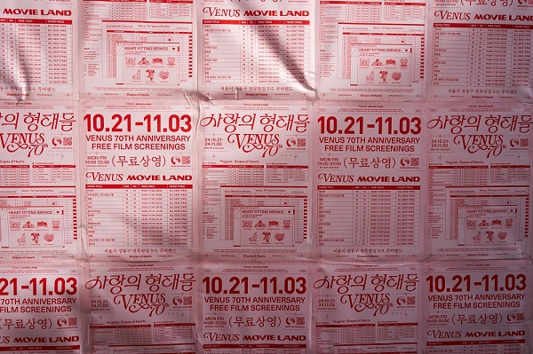 성수동 소극장 무비랜드와 협업한 비너스 70주년 기념 팝업스토어는 영화와 전시가 결합된 새로운 형태의 공간으로 화제를 모았다.
