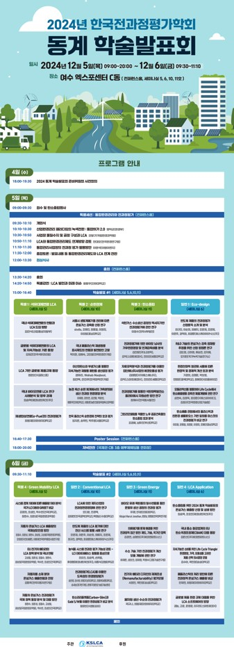 산업통상자원부 김만식의 ‘국내 석유대체연료의 현황과 LCA도입 방향’, 충남대 쉘라(Shella)·조해인·장용철·이청희·이호원의 ‘서울시 생활계 폐기물 관리에 따른 온실가스 감축량 산정 연구’, 한국서부발전 이정수의 ‘석탄가스 수소생산 공정의 엑서지 기반 전과정평가에 관한 연구’, SK하이닉스 최규진·이순화·최예지·오윤재·조윤제·이온주·권혁화·최경문의 ‘반도체 제품의 전과정평가 산정 로직 소개 및 분석’ 등이 발표된다.