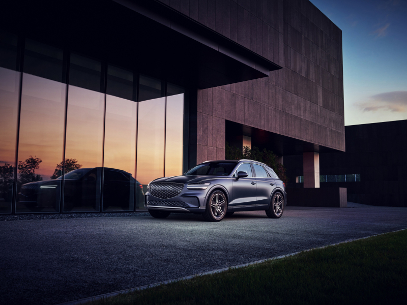 차량 전면부는 지-매트릭스 패턴을 그라데이션 형태로 입힌 새로운 형상의 크레스트 그릴과 더불어 와이드한 느낌을 주는 범퍼 디자인, 인테이크 그릴 패턴을 바탕으로 전동화 스포츠 유틸리티 자동차(SUV)만의 세련된 감성을 표현했다.