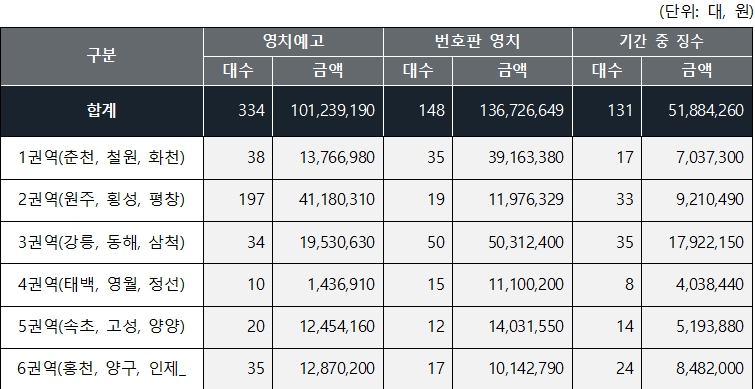 강원특별자치도, 체납 자동차세 및 과태료 차량 번호판 영치