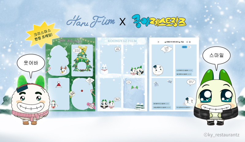 컬래버 프레임은 겨울 및 크리스마스 등을 테마로 한 총 3종이며, 쿵야 레스토랑즈 특유의 유머러스함을 엿볼 수 있는게 특징이다. 전국 하루필름 매장에서 만나볼 수 있으며 향후 4회에 걸쳐 콜라보 프레임을 순차적으로 추가 공개할 계획이다.