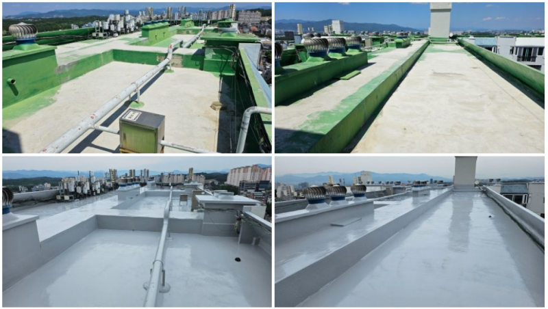 해당 기술은 여름철 냉방비와 겨울철 난방비를 절감할 수 있는 차열 기능과 탁월한 내구성을 동시에 제공하며, 방수층의 노화와 훼손을 기존 공법보다 현저히 줄일 수 있는 혁신적인 방수 공법이다.