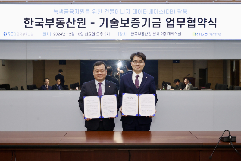 "탄소 감축하면 보증료 감면"…기보-한국부동산원, 건물에너지DB 활용 협약