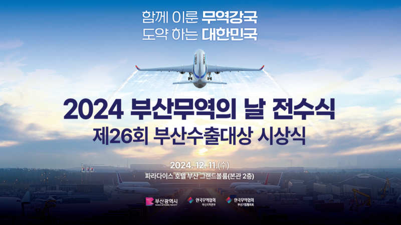 이날 행사에는 박형준 부산시장, 이수태 부산기업협의회장을 비롯해 수출유공 기업대표와 유공자, 수출기관 관계자 등 250여명이 참석할 예정이다.