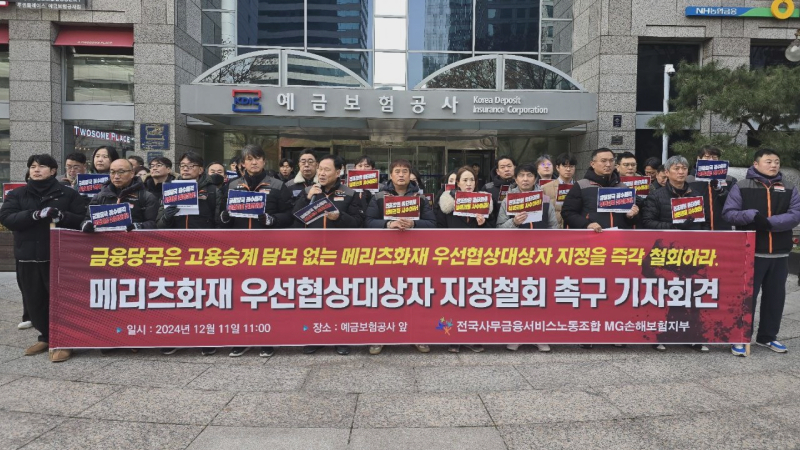 노조는 오늘(11일) 기자회견을 열고 “메리츠화재는 공공연하게 고용승계는 없다는 발언을 서슴지 않게 하고 있다”며 “예금보험공사에 강제적인 인력 조정을 요청했다는 이야기까지 나오고 있다”고 목소리를 높였습니다.
