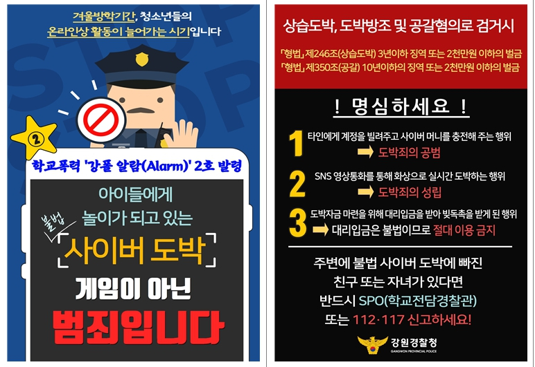 강원경찰청, 동계방학기간 사이버도박 예방 활동 ... 청소년 안전에 노력