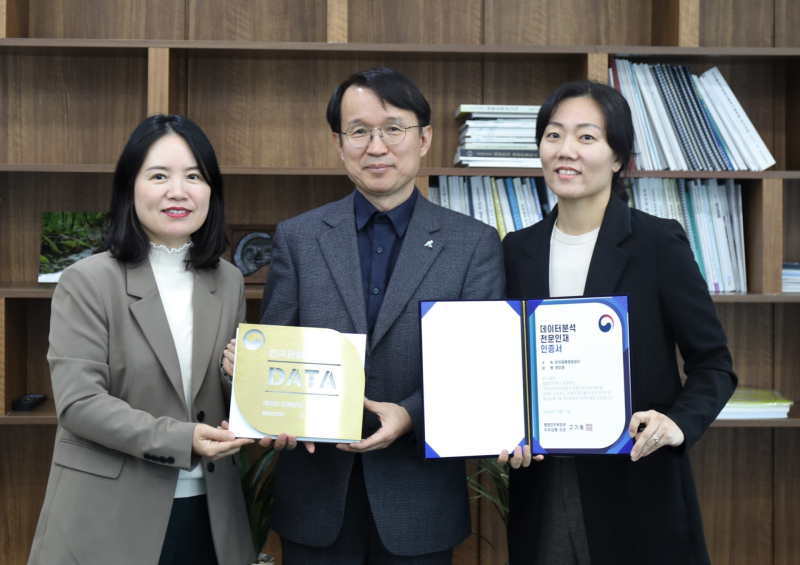 행정안전부에서 데이터 분석 기획‧수행 능력을 갖춘 공공분야 전문인재 양성을 위해 ‘데이터분석 전문인재 양성과정’을 실시했다. 이에 KOMIR도 선정되어 데이터 처리, AI모델링 등 심화과정을 5개월 간 이수하고 전문가위원회의 최종 인증평가를 통과하여 ‘데이터 인재양성 선도기관’으로 인증을 획득했다.