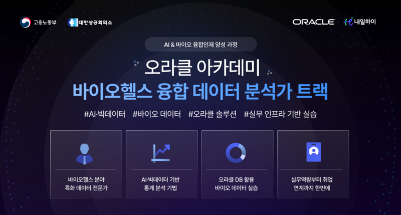이번 프로그램 '오라클 아카데미 바이오헬스 융합 데이터 분석가 트랙'은 오라클 교육사업부가 설계 및 운영을 담당하고 하이테커가 훈련 운영을 지원하며, 대한상공회의소가 운영 지원기관으로 참여한다.