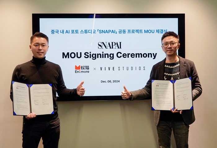 인공지능 기반 버추얼 프로덕션 기업 ‘비브스튜디오스’가 지난 6일 중국 위마오 미디어 그룹과 ‘중국 내 AI 포토 스튜디오 스냅파이(SNAPAI) 공동 프로젝트 체결식’을 진행했다고 밝혔다.