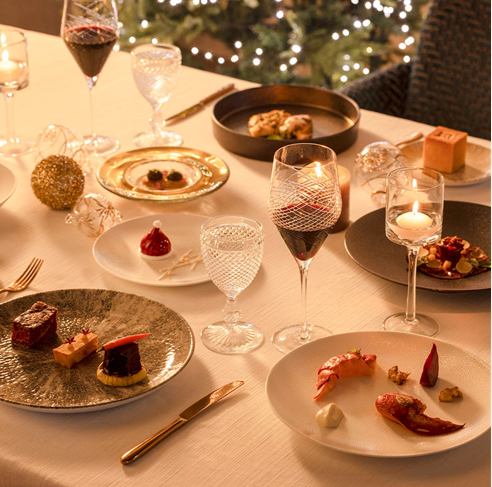 페스티브 디너 7코스의 경우 화이트 트러플 샐러리악 수프가 비프 카르파치오를 잇고, 식욕을 돋울 크리스탈 캐비아와 뱅존 소스의 감자 요리가 뒤이어 서브된다. 만찬의 흥을 고조시킬 4번째 요리는 샤프론 비스크 소스와 비트를 곁들인 랍스터가 담당한다.