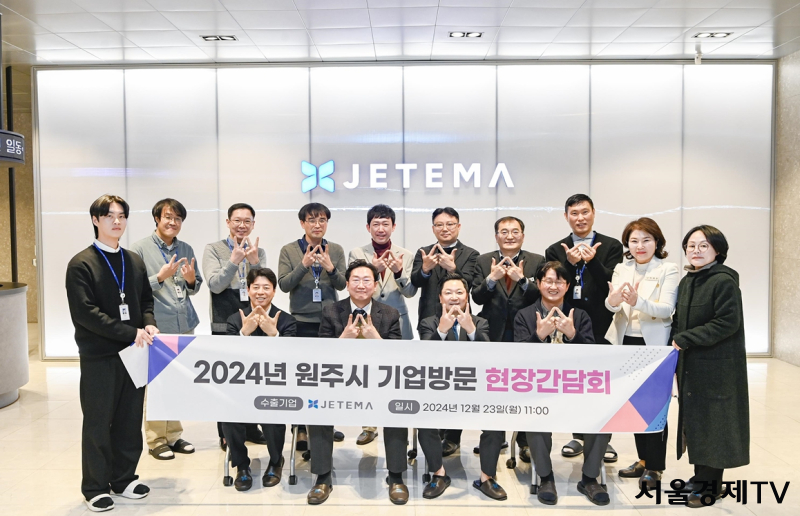 이날 원 시장은 회사 소개 및 기업 현황 안내를 듣고 생산시설 및 제품 생산 과정을 탐방하며 기업의 당면 현안에 대해 논의했으며, ㈜제테마의 발전과 원주시 수출 성장에 기여한 직원들을 격려했다.