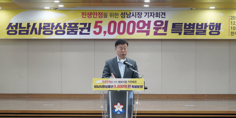 성남시, 성남사랑상품권 5,000억원 특별발행