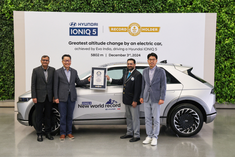 현대차 '아이오닉 5', 최고 고도차 주행 전기차 부문서 기네스북 올라