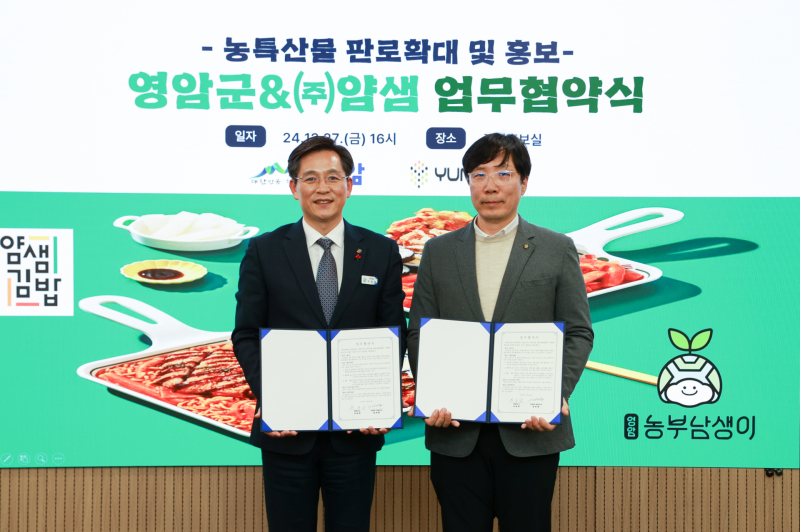 또한 얌샘김밥은 이번 협약을 통해 영암군 농특산물의 소비 촉진을 위한 마케팅 활동도 적극 전개할 예정이다. 영암군의 농산물을 활용한 메뉴를 전국 매장에 순차적으로 출시하고 이를 소비자에게 알리기 위한 다양한 프로모션과 캠페인을 진행할 예정이다.