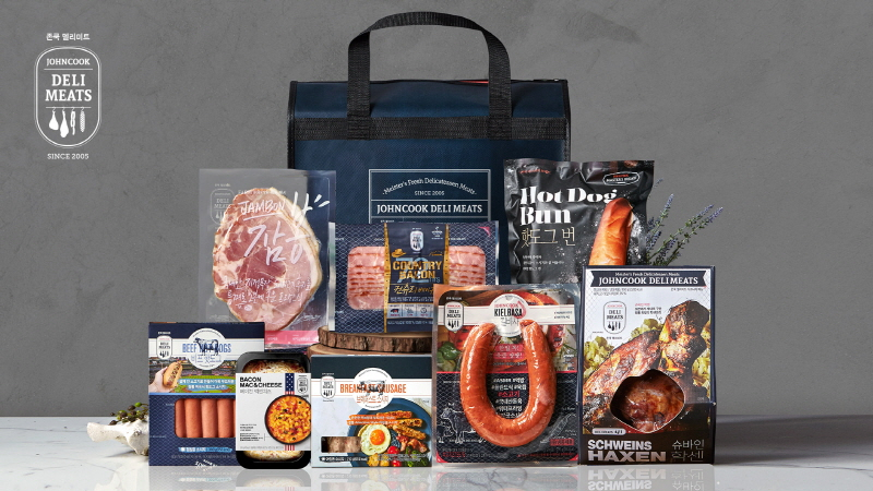먼저 존쿡 델리미트 시그니처 세트는 슈바인 학센과 킬바사, 잠봉, 컨츄리 베이컨, 비프핫도그 등 존쿡 델리미트의 시그니처 제품을 풍성하게 담아 구성한 제품이다.
