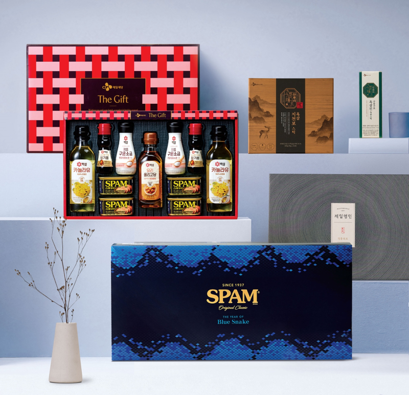 공식몰 CJ더마켓에서만 판매되는 단독 선물세트도 선보인다. 푸른 뱀의 해를 맞아 스테디셀러 스팸 클래식과 나트륨 25% 낮춘 스팸 마일드로 구성된 스팸 청사 에디션과 건강 선물세트인 한뿌리 흑삼대보 청사 에디션을 한정된 수량으로 출시했다. 두 제품 모두 푸른 뱀 가죽을 연상시키는 고급스러운 디자인으로 좋은 반응이 기대된다.